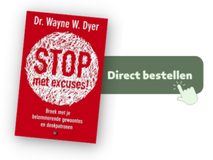 In Stop met excuses! onthult Wayne Dyer hoe je de negatieve denkpatronen die verhinderen dat je de hoogste niveaus van geluk, succes en gezondheid bereikt, kunt veranderen. Het is vaak ontzettend moeilijk om de destructieve denkgewoontes te doorbreken die je al vanaf je jeugd met je meedraagt. Deze worden continu goedgepraat met excuses als ‘Het is te laat om nu nog te veranderen’, ‘Zo ben ik altijd geweest’. Wayne Dyer daagt je uit om die excuses voor eens en voor altijd de deur uit te doen.